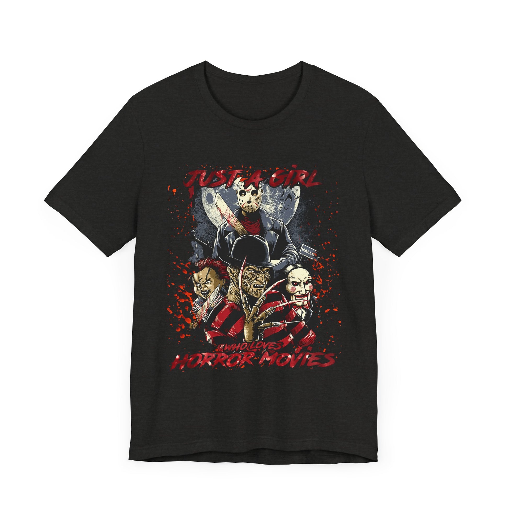 Just A Girl Who Loves Horror Movies Halloween Unisex Jersey Short Sleeve Tee